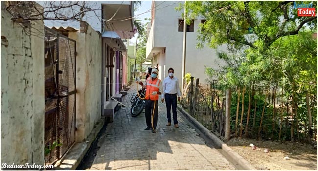 जिले में कोरोना का प्रकोप तेजी से बढ़ रहा है, वहीं कस्बा उझानी में भी कोरोना के मामलों में लगातार बढोत्तरी हो रही है। इसे देखते हुए नगर पालिका द्वारा सैनिटाइजेशन की प्रक्रिया भी तेज कर दी गई है। रविवार को लॉकडाउन के बीच को सुबह से ही सैनिटाइजेशन का कार्य प्रारंभ किया गया, जो शाम तक जारी रहा। पालिका एसआई हरीश त्यागी, लिपिक विकाश कुमार, सफाई नायक विकेश कुमार, अनिल, संजीव, सोहनपाल, राकेश, नवल अन्य स्टाफ भी कर्मचारियों के साथ शहर में घूमें। यहाँ अभियान चलाकर कोतवाली, अस्पताल, घंटा घर चौराहा, मुख्य बाजार, धार्मिक स्थलों, सार्वजनिक स्थानों के साथ साथ घरों, गलियों व सड़कों को सैनिटाइज किया गया।
