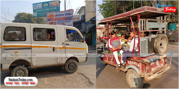 उझानी(बदायूं)। जनपद में बीते सोमवार को सड़क हादसे में चार स्कूली बच्चों समेत पांच लोगों की मौत के बाद भी प्रशासन गंभीर नहीं है। स्कूली बच्चों को अनफिट वाहनों में ढोया जा रहा है और जिम्मेदार अंजान बने हैं। न तो अभिभावक ध्यान दे रहे हैं और न ही पुलिस सख्ती कर रही है। ऐसे में स्कूल संचालक मनमानी कर रहे हैं।