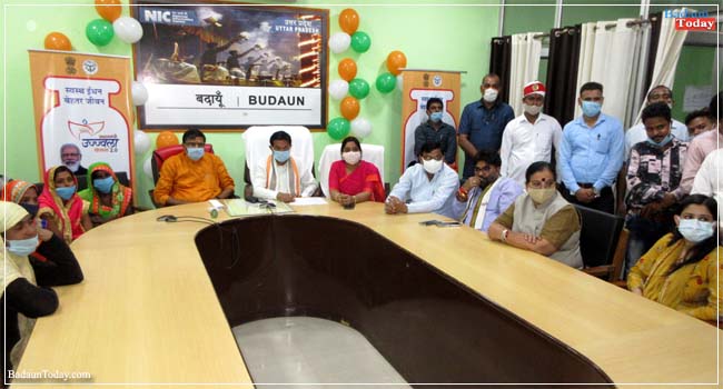 मुख्यमंत्री योगी आदित्यनाथ ने बुधवार को प्रधानमंत्री उज्ज्वला योजना के दूसरे चरण के लाभार्थियों को मुफ्त एलपीजी कनेक्शन वितरित किए। अपने सरकारी आवास से वर्चुअल कार्यक्रम के जरिए सीएम योगी विभिन्न जिलों के लाभार्थियों से संवाद भी किया और उनके अब तक के अनुभव को जाना। इसी क्रम में कलेक्ट्रेट में कार्यक्रम का आयोजन किया गया। कार्यक्रम के मुख्य अथिति भारत सरकार के सहकारिता एवं उत्तर पूर्वी क्षेत्र विकास राज्यमंत्री बीएल वर्मा ने नगर विकास राज्यमंत्री महेश चन्द्र गुप्ता, सांसद संघमित्रा मौर्य, जिलाधिकारी दीपा रंजन, शेखूपुर विधायक धर्मेन्द्र शाक्य, भाजपा जिलाध्यक्ष अशोक भारतीय एवं नगर पालिका बदायूँ की चेयरमैन दीपमाला गोयल के साथ माँ सरस्वती की प्रतिमा पर पुष्प अर्पित कर कार्यक्रम का शुभारंभ किया।